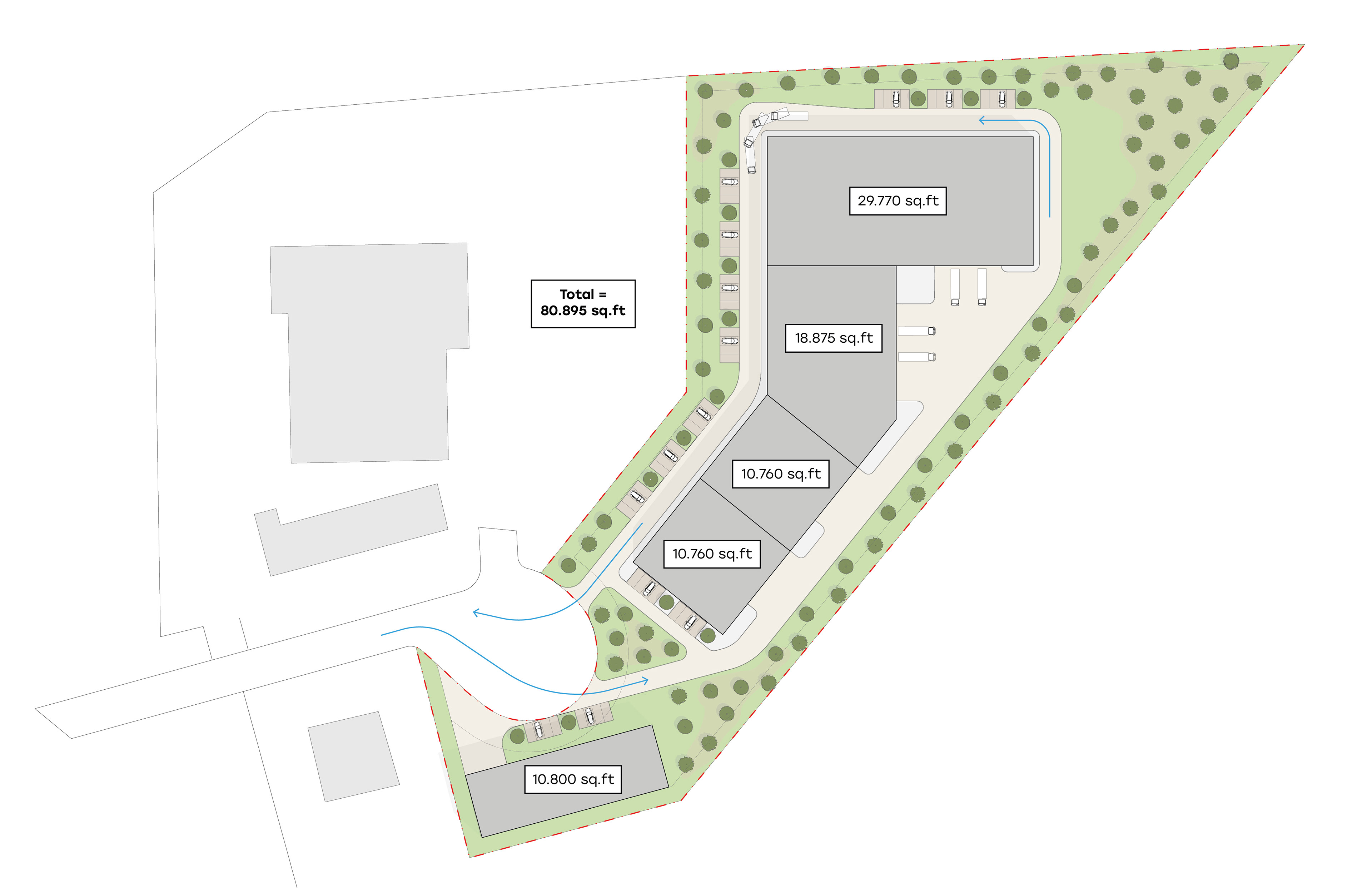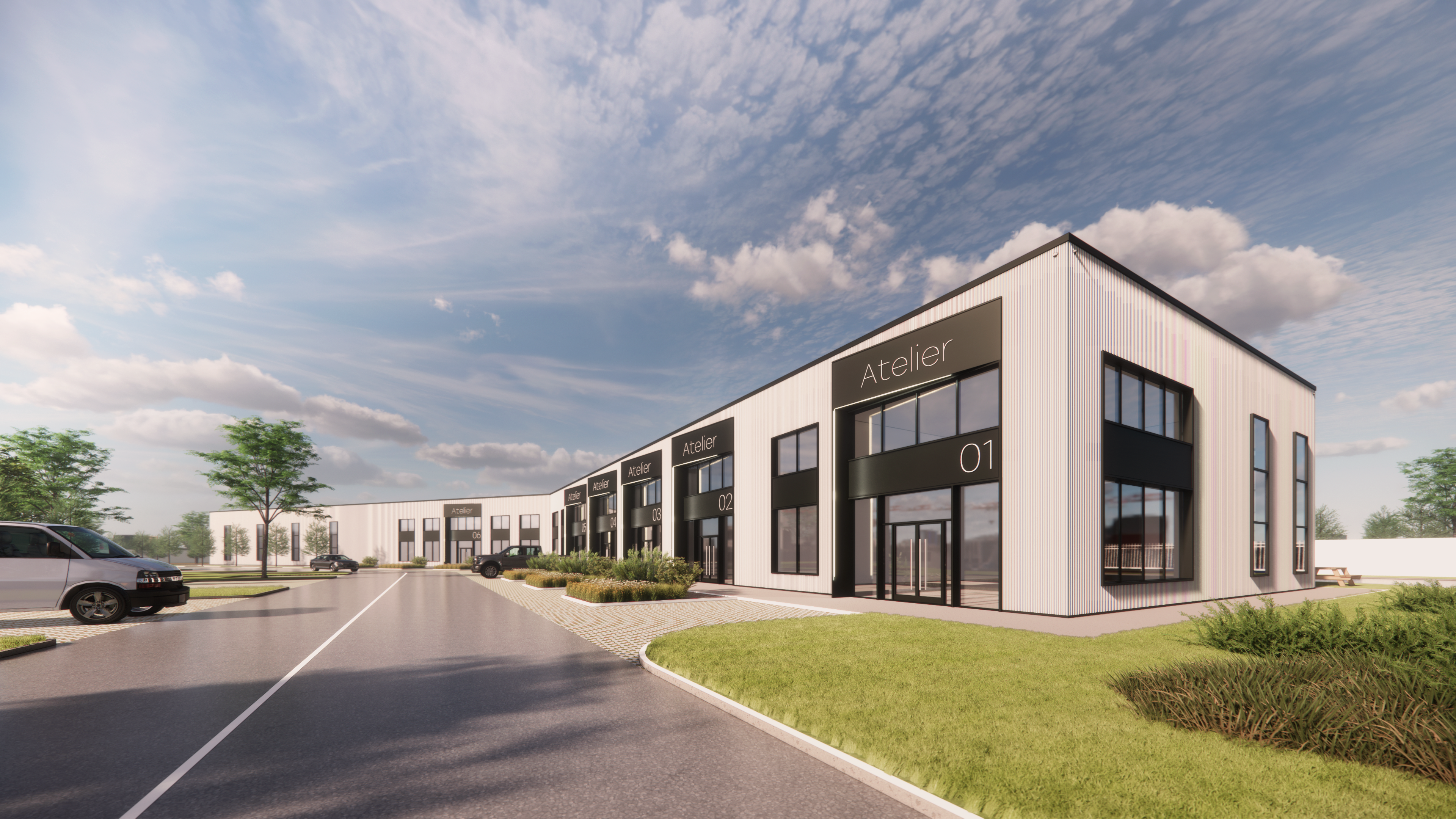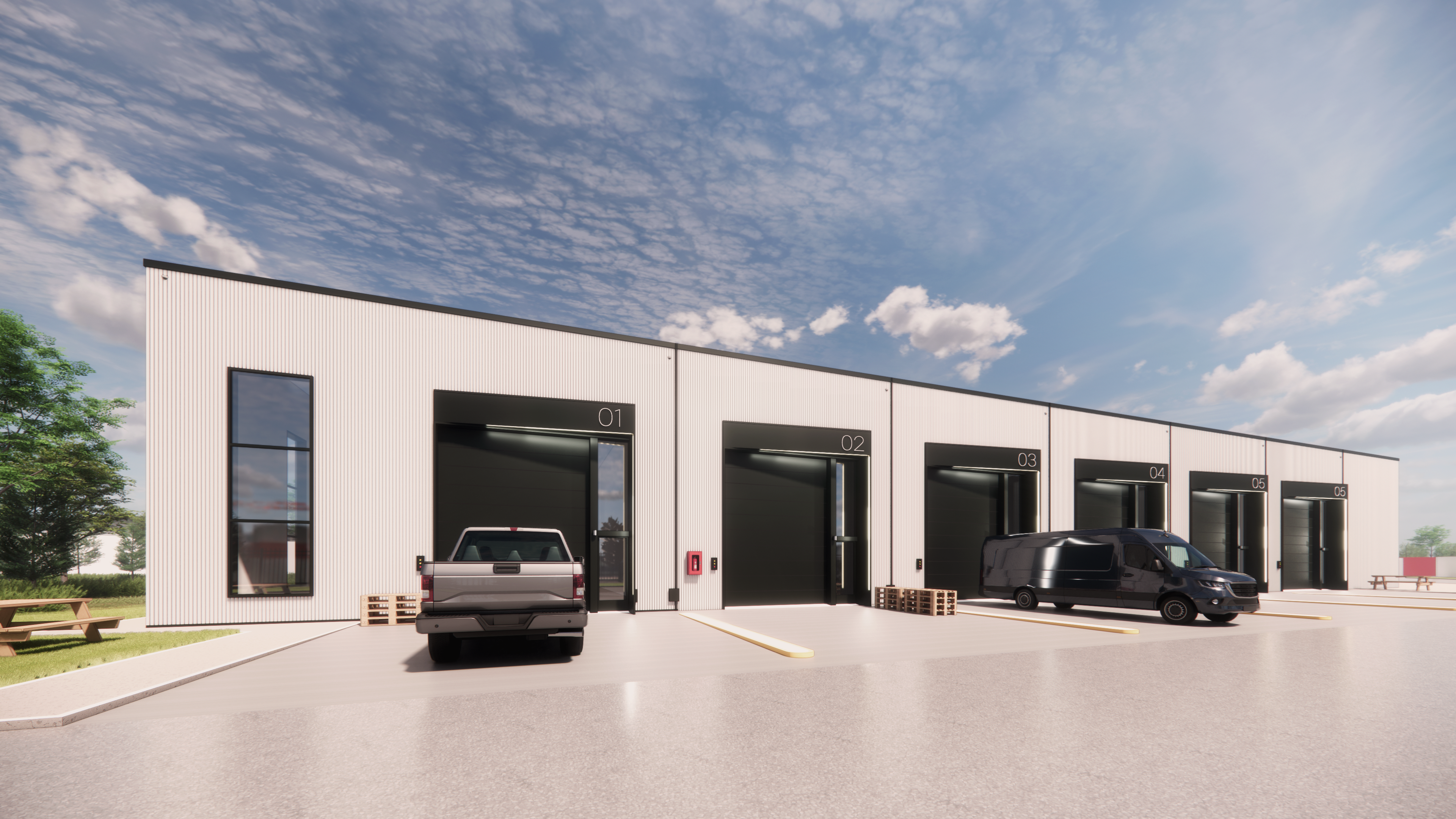 Feasibility and conceptual study for a condo-warehouse development on an industrial site. The client aimed to create a relatively simple yet innovative architecture that introduces a fresh dynamic to the industrial zone. The strength of the concept lies in the flexibility of the spaces, featuring multiple client entrances with integrated office areas and a rear truck gate. Additionally, certain suites can be combined to quickly expand the tenant’s usable area, offering a highly adaptable solution for diverse business needs.